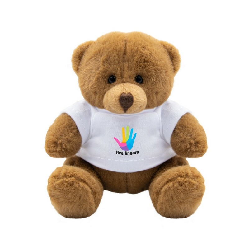 Miś posiada białą koszulkę, którą można spersonalizować poprzez nadruk. Koszulka wykonana z poliestru, dostarczana oddzielnie, jest idealnym miejscem na Twoje logo, hasło promocyjne lub dowolną grafikę, co czyni go świetnym narzędziem marketingowym. Wymiary misia to 12 cm, a jego waga to jedynie 41 g, co czyni go łatwym do zabrania w każdą podróż, a także prostackim w dystrybucji jako gadżet reklamowy.